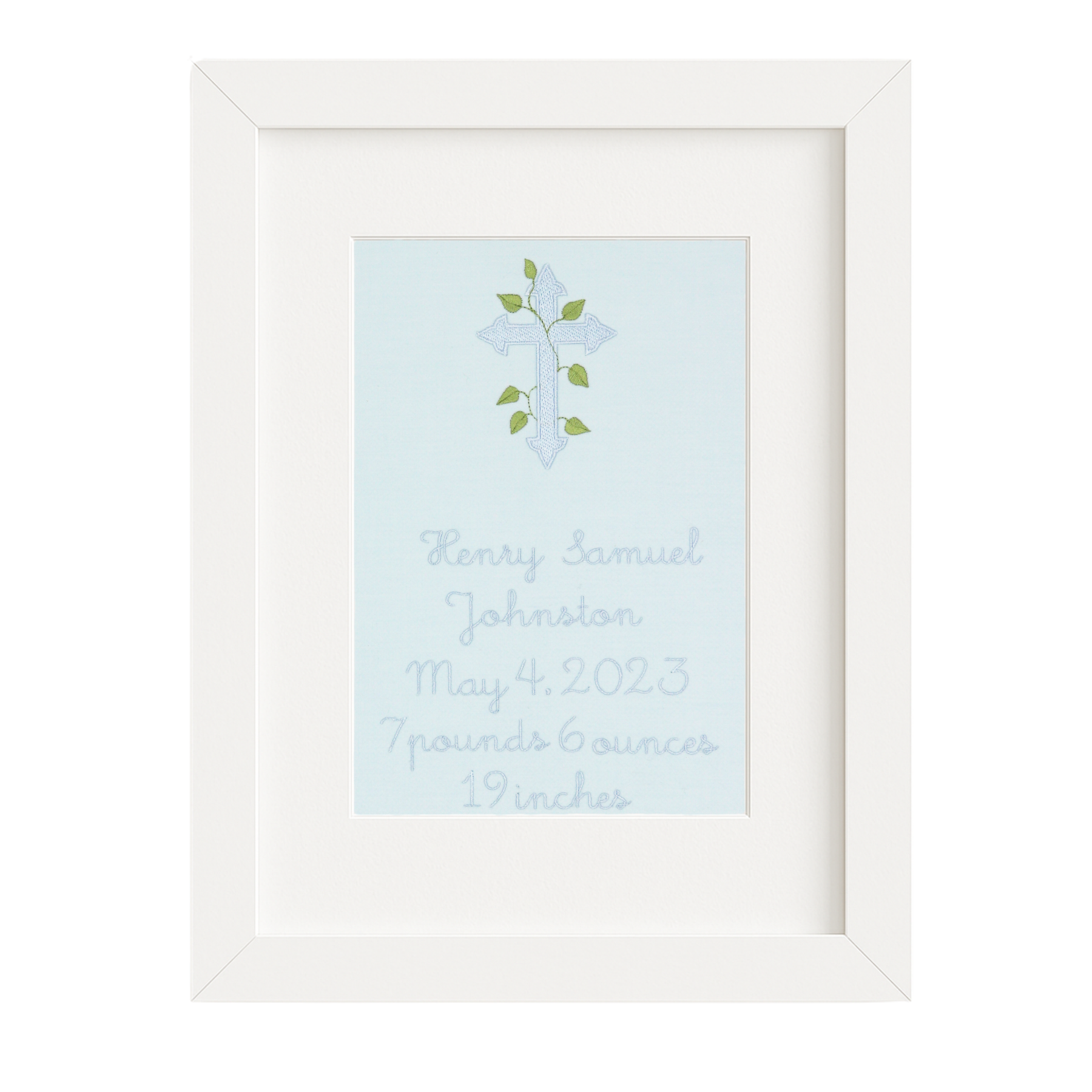 Celebrate your baby’s arrival with our custom embroidered birth announcement. Each piece is personalized with your child’s name, birth date, weight, and length.